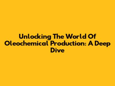 Unlocking The World Of Oleochemical Production: A Deep Dive