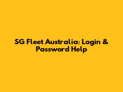 SG Fleet Australia: Login & Password Help