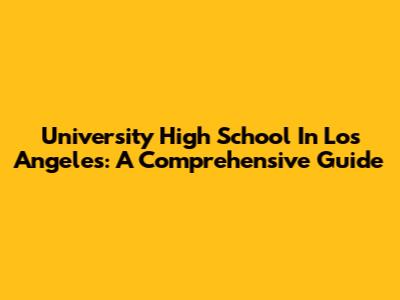 University High School In Los Angeles: A Comprehensive Guide