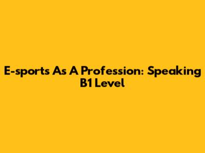 E-sports As A Profession: Speaking B1 Level
