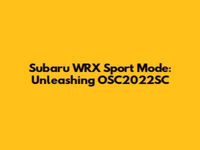 Subaru WRX Sport Mode: Unleashing OSC2022SC