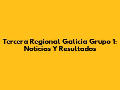 Tercera Regional Galicia Grupo 1: Noticias Y Resultados