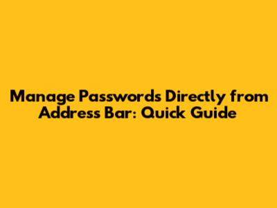 Why Manage Passwords from the Address Bar?