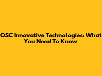OSC Innovative Technologies: What You Need To Know