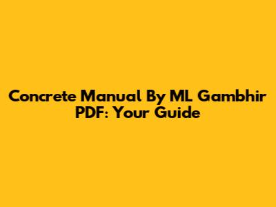 Concrete Manual By ML Gambhir PDF: Your Guide