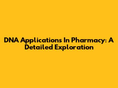 DNA Applications In Pharmacy: A Detailed Exploration