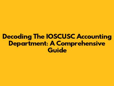 Decoding The IOSCUSC Accounting Department: A Comprehensive Guide