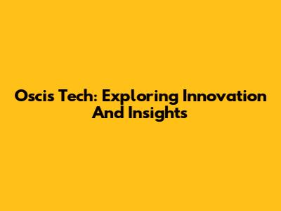 Oscis Tech: Exploring Innovation And Insights