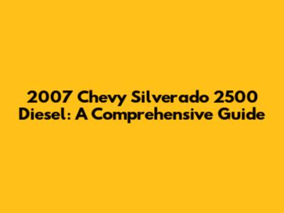 2007 Chevy Silverado 2500 Diesel: A Comprehensive Guide