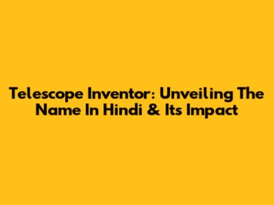 Telescope Inventor: Unveiling The Name In Hindi & Its Impact