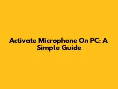 Activate Microphone On PC: A Simple Guide