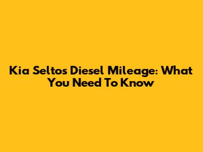 Kia Seltos Diesel Mileage: What You Need To Know