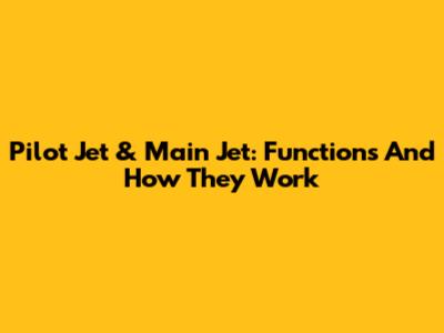Pilot Jet & Main Jet: Functions And How They Work