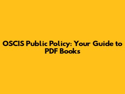 Hey guys! Are you diving into the world of OSCIS public policy and looking for some awesome PDF books to help you out? You've come to the right place! Understanding public policy is super important, whether you're a student, a policy wonk, or just someone who wants to know how the world works. Let's break down what OSCIS public policy is all about and point you toward some great resources you can find in PDF format.