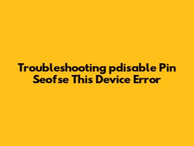 Troubleshooting 'pdisable Pin Seofse This Device' Error
