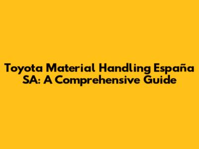 Toyota Material Handling España SA: A Comprehensive Guide