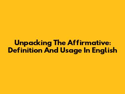 Unpacking The Affirmative: Definition And Usage In English