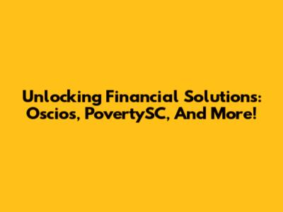Unlocking Financial Solutions: Oscios, PovertySC, And More!