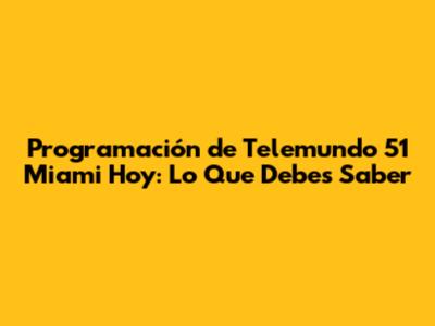 Programación De Telemundo 51 Miami Hoy