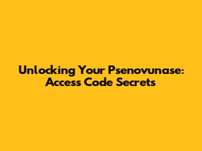 Unlocking Your Psenovunase: Access Code Secrets