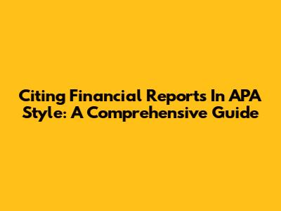 Citing Financial Reports In APA Style: A Comprehensive Guide