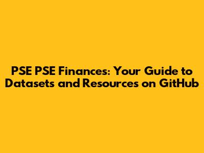 Hey everyone! Are you guys diving into the exciting world of financial data, especially related to the Philippine Stock Exchange (PSE)? If so, you're in the right place! This article will be your go-to guide for exploring the PSE PSE Finances datasets available on GitHub. We'll break down what you can find, how to access it, and why it's so incredibly valuable for your analyses, research, or even just satisfying your curiosity. Let's get started, shall we?