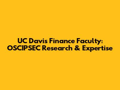 UC Davis Finance Faculty: OSCIPSEC Research & Expertise