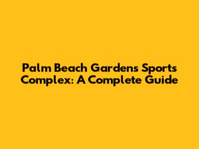 Palm Beach Gardens Sports Complex: A Complete Guide