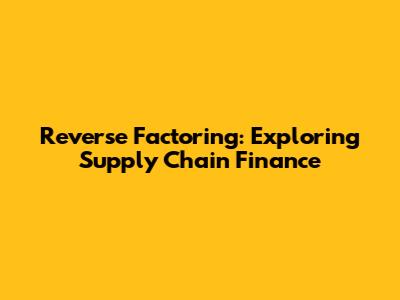 Reverse Factoring: Exploring Supply Chain Finance