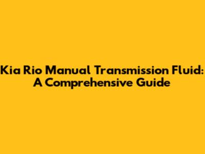 Kia Rio Manual Transmission Fluid: A Comprehensive Guide
