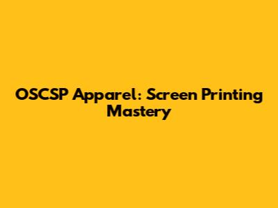 OSCSP Apparel: Screen Printing Mastery