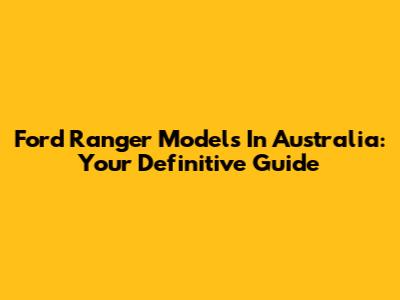 Ford Ranger Models In Australia: Your Definitive Guide