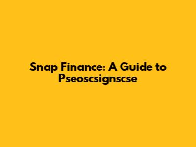 Hey guys! Ever heard of Snap Finance and wondered how it connects with something called pseoscsignscse? Yeah, it sounds like alphabet soup, but don't worry, we're going to break it all down in a way that's super easy to understand. We will explore the ins and outs of Snap Finance, shedding light on what pseoscsignscse might represent in its world. Whether you're a seasoned finance guru or just starting to dip your toes in, this guide is for you. Let’s dive in!
