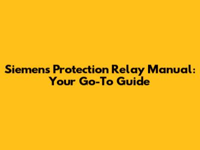 Siemens Protection Relay Manual: Your Go-To Guide
