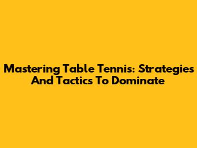 Mastering Table Tennis: Strategies And Tactics To Dominate