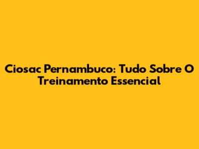 Ciosac Pernambuco: Tudo Sobre O Treinamento Essencial