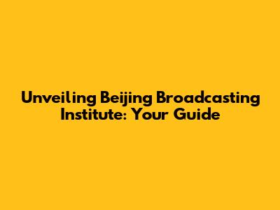 Unveiling Beijing Broadcasting Institute: Your Guide