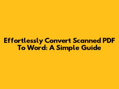 Effortlessly Convert Scanned PDF To Word: A Simple Guide