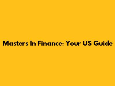 Master's In Finance: Your US Guide