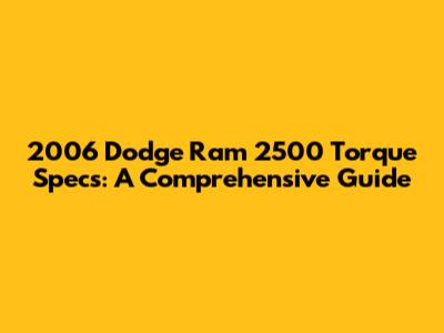 2006 Dodge Ram 2500 Torque Specs: A Comprehensive Guide