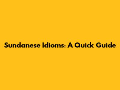 Sundanese Idioms: A Quick Guide