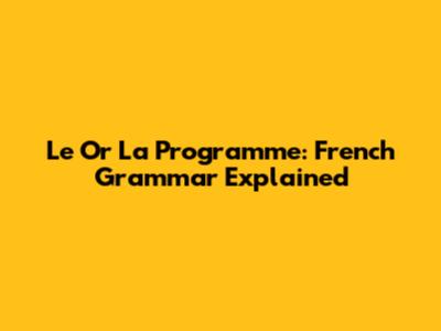 Le Or La Programme: French Grammar Explained