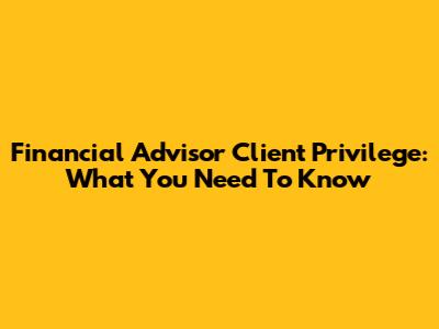 Financial Advisor Client Privilege: What You Need To Know
