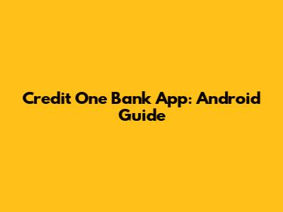 Credit One Bank App: Android Guide