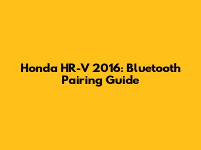 Honda HR-V 2016: Bluetooth Pairing Guide